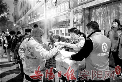 自11月11日起,县总工会在县城户外劳动者相对集中场所设置了5处免费早餐服务点,每个工作日的早上可为300余名以环卫工为主的户外劳动者提供一份早餐,活动开展以来已服务数万人次。图为12月18日,县总工会志愿者在早餐服务点开展志愿服务活动。(王计亮 摄)
