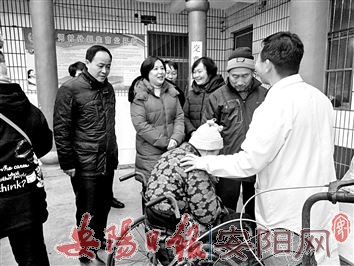 11月24日,市残联党员干部到殷都区调研脱贫攻坚工作。图为他们在北蒙街道办事处枯河村村委会,实地指导残疾人证换发、鉴定工作。
