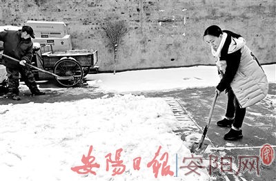 为确保贫困群众安全、温暖过冬,豆腐营街道党员干部近期加大了对贫困群众走访慰问频率。图为1月6日,街道干部为柏庄镇花村店村贫困群众扫雪。