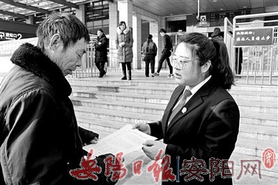 ◀1月2日,在农民工返乡之际,龙安区人民法院组织干警来到安阳火车站广场,开展了农民工法律服务宣传活动。活动现场,干警耐心地为农民工解答各种法律问题,引导他们以正确的方式维护自身合法权益,进一步扩大了劳动保障等法律法规的社会知晓度,增强了广大农民工的法律意识。