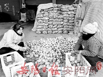 在一个土豆批发摊位,五六个工人正在从大卡车上卸土豆,老板张爱林说:“这车土豆是从内蒙古拉过来的,售完及时进货,保证货源不断。”新鲜的土豆吸引了四五个零售商前来问价,他们都骑着三轮车,到处打听询问。一位零售商说:“每公斤进价1.9元,零售卖3元可不好卖。”由于价钱没谈拢,他又去另一家土豆摊位询问。