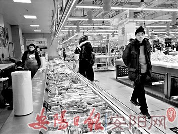 1月4日,在平原路与弦歌大道交叉口附近的一家大型超市内,不少市民正在选购猪肉。市民张亮告诉记者,最近猪肉价格降了不少,快过年了,准备多买一些猪肉做腊肠。