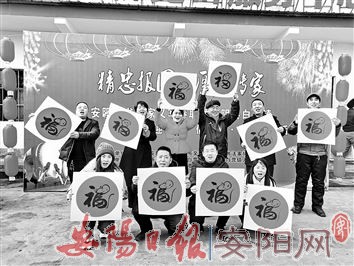 图为白营镇工作人员现场展示设计好的生肖鼠、猪造型福字。 (本报记者 郭 凡 摄)