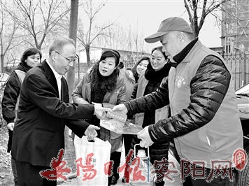 图为1月14日下午,市总工会、市直工会工作人员带着慰问金和米、面、油等慰问品,到市城市管理局困难职工家中走访慰问。