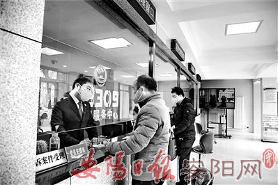新冠肺炎疫情发生后,为防止人员接触引发传染,安阳县人民检察院综合业务部非常时期采取非常措施,通过微信工作群和电话告知,以及案管大厅门口张贴工作提示等方法,引导大家特殊时期“零接触”办理业务;利用“12309中国检察网”及群众接待大厅服务电话,倡导律师、案件当事人及其近亲属通过网络平台、线上查询等方式了解掌握案件诉讼进程;为提出阅卷申请的人员提前准备卷宗光盘,相关人员即来、即取、即走,减少聚集接触时间。图为2月24日12309检察服务大厅工作人员接待群众。