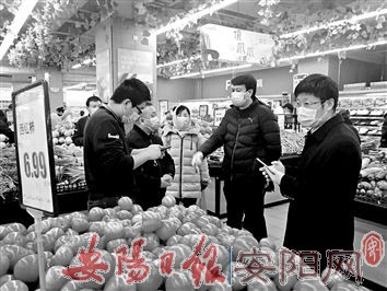连日来,市市场监督管理局文峰执法大队持续对辖区农贸市场、药房、超市开展拉网式排查,切实维护市场稳定。图为昨日,执法人员在辖区超市检查。(曹 倩 摄)