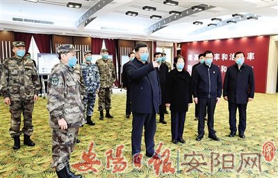 在火神山医院指挥中心,习近平听取医院建设运行、患者收治、医务人员防护保障、科研攻关等情况介绍。习近平指出,疫情发生以来,包括军队在内的广大医务工作者发扬特别能吃苦、特别能战斗的精神,义无反顾奔赴湖北和武汉,毫无畏惧投入防控救治工作,日夜奋战,舍生忘死,不负重托,不辱使命,同时间赛跑,与病魔较量,为武汉疫情防控工作作出了重要贡献。军队医务人员牢记我军宗旨,招之即来,来之能战,战之能胜,为党旗、军旗增添了光彩。沧海横流,方显英雄本色。你们真正做到了救死扶伤、大爱无疆。你们是光明的使者、希望的使者,是最美的天使,是真正的英雄!党和人民感谢你们!