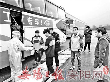 当天9时,各乡镇的复工人员准时来到高速公路出入口,县人社局工作人员为返岗复工人员逐一发放口罩,还为每一位返岗人员消毒、测量体温,并叮嘱他们要做好自我防护,平安第一。瓦岗乡的李卫杰激动地说:“谢谢你们这么贴心的服务,温暖了我们大家!”