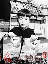 截至目前,全市中小学教材已配送到校,并采用多种形式发放给学生。图为我市一名二年级学生展示自己的新课本。