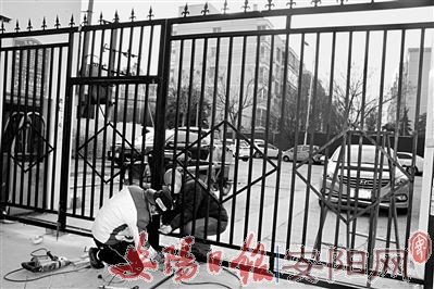 图为工作人员在安装智能门禁系统。(本报记者 刘斐 摄)