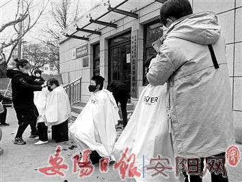 3月9日,紫薇大道街道晨光社区联合辖区爱心理发店为居民理发。“在抗疫的关键时期,主动承担一份社会责任,为居民提供力所能及的帮助,我觉得非常有意义。”爱心理发店的一位理发师说出了自己的心声,居民纷纷点赞。图为理发现场。(郭竹清 摄)