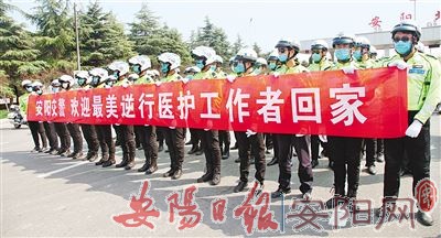 昨日15时,警车开道、警笛长鸣,我市以最高礼遇迎接安阳援鄂医疗队队员凯旋。2月2日以来,我市68名医护工作者积极响应以习近平同志为核心的党中央号召,带着市委、市政府的殷切嘱托,带着白衣天使的神圣使命,带着安阳人民的深情厚谊,奔赴武汉、携手战“疫”,圆满出色地完成了救治任务,为夺取武汉保卫战、湖北保卫战的压倒性胜利作出了重要贡献。
