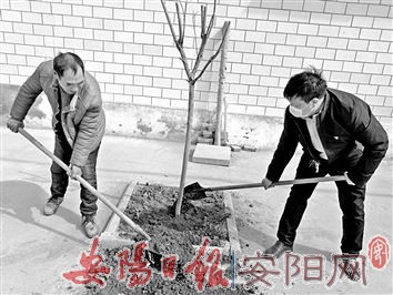 任固镇孟庄村抓住春季有利时期,对村居环境进行绿化,种植各类绿植1500余株,大力推进美丽乡村建设。图为3月25日,该村干部群众在村道旁栽种树木。