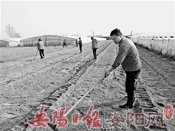 ▶慈周寨镇是闻名豫北的万亩韭菜种植基地。该镇在抓好疫情防控的同时紧抓产业结构调整,通过举办蔬菜栽培技术培训班、农技人员下沉到棚区田间、印发蔬菜种植病虫害防治技术资料等措施,提高菜农技术水平。目前,该镇的万亩露地和拱棚韭菜已收获了3茬。绰号“果蔬专列”的慈五村菜农李振收今年大棚韭菜将扩种到1.4公顷。图为十几名钟点工正为他整地打畦准备育苗。