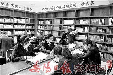 4月23日,市人民检察院举办“‘疫’线时刻·‘疫’起读书”主题系列活动之“共读半小时”活动。据了解,该院图书室暨市图书馆市检察院分馆有各类藏书5000余册,涵盖多领域、多学科,同时设有电子书。为方便干警阅读,该院坚持每天开放图书室,经常组织读书沙龙和诵读活动。(本报记者 侯沛丽 摄)