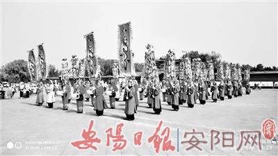 “五一”期间,汤阴县举行了主题为“千年回眸·相约汤阴”的“古城之旅”系列活动,内容包括滨河观光之旅、岳庙精忠之旅、羑里寻根之旅、欢乐梦幻之旅、中医养生之旅等一系列文化活动,展示了汤阴的厚重文化,提升了汤阴旅游形象,丰富了广大群众的假日文化生活。图为5月2日,羑里城门前的跑帷子表演。(郭万生 摄)