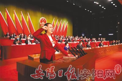 新当选的市人大常委会主任徐家平首先进行宣誓。随后,新当选的市人民政府市长袁家健进行宣誓。