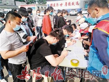 图为5月14日,该街道志愿者填写捐献造血干细胞表格。(琚景铭 摄)