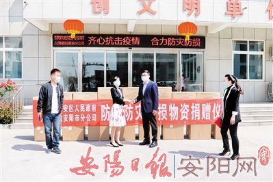 图为人保财险安阳市分公司在龙安区卫生健康委员会举行防疫物资捐赠仪式。
