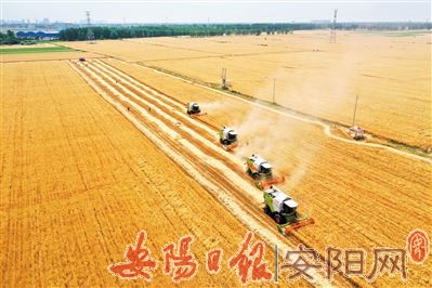 近日,我国夏粮主产区河南省的小麦陆续收割。今年小麦种植面积继续保持在570万公顷以上,与上年持平。