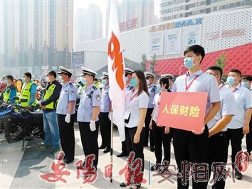 本报讯 (记者 许美美) 为全面推广“一盔一带”安全守护行动,提高广大市民的文明安全出行意识,做好道路交通事故预防“减量控大”工作和我市创建全国文明城市工作,近日,由市交警支队和人保财险安阳市分公司等单位共同举办的市“一盔一带”安全守护暨文明交通宣传推动工作启动仪式在市职工文化体育中心广场举行。