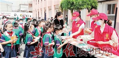 5月27日,龙安区司法局组织普法志愿者走进龙安区红旗小学开展“开学第一课,送法进校园”普法宣传活动,为该校710余名学生送上一份法治大餐,并给孩子们带去了“六一”儿童节的美好祝福。(本报记者 王晓楠 摄)