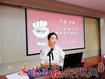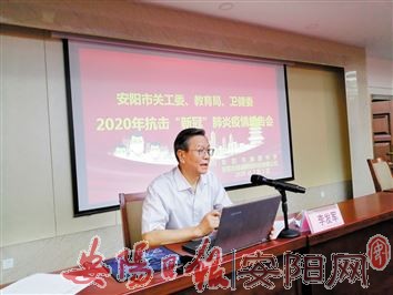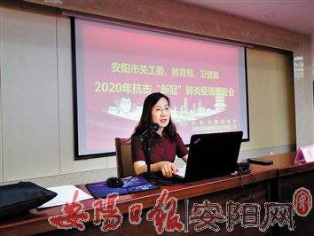 为了弘扬战“疫”精神,凝聚正能量,更好地用身边英雄的感人事迹激发青少年爱国之情、报国之志,7月1日上午,安阳市关工委、市教育局、市卫健委联合主办的2020年抗击新冠疫情报告会在安阳市第四中学5楼报告厅举行。市关工委执行主任李发军,市教育局党组成员、二级调研员刘志军等出席了会议。会议介绍了我市抗击疫情整体情况和当前工作及防护形势,向该校师生宣讲了医务防护知识,“90后”援鄂护士董亦阳向学生们讲述了援鄂时的亲身经历,最后还向学生宣讲了全球疫情下各国的制度对比。100余名师生聆听了此次会议。