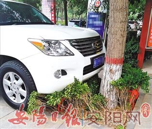 为避免黄土裸露,绿化工人见缝插针进行道路美化,还细心地用红色线绳进行围护,以便让绿植株型长得更加漂亮,但被一些不文明停车行为破坏得面目全非。不知道这位车主心中文明的“红线”在哪里。(本报记者 高学艳 摄)