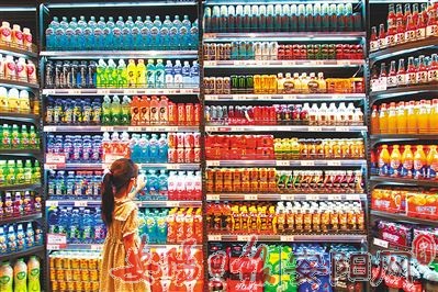 7月9日,一名小朋友在河北省邯郸市一家超市购买饮料。