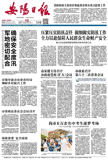 陈兆明强调,当前汛期已经来临,防汛进入关键阶段。军地各级要着眼大局,密切协作,认真总结“7·19”特大暴雨灾害工作经验,充分依靠军民整体力量战胜洪涝灾害。军分区、人武部要加强与地方沟通联系,积极协调抢险救灾有关事宜,帮助解决好防汛工作中遇到的困难和问题。驻安部队、武警官兵和广大民兵要坚持发扬优良传统,进一步熟悉防汛方案,加强训练和演练,做好人员、物资准备,充分发挥在抗洪抢险中的中流砥柱作用。各级各部门要服从服务大局,加强统筹协调,主动担当尽责,强化协同配合,切实形成军地联合应对洪涝灾害的强大合力。
