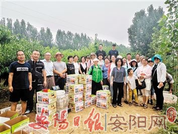 为了帮助贫困户销售自家的农产品,7月10日,安阳市第三十六中学在内黄县豆公镇李大晁村开展了爱心助农活动。当天,该校30名老师来到李大晁村一户贫困户的桃园,共采摘、购买鲜桃400余公斤,通过消费扶贫的方式助力贫困户增收。