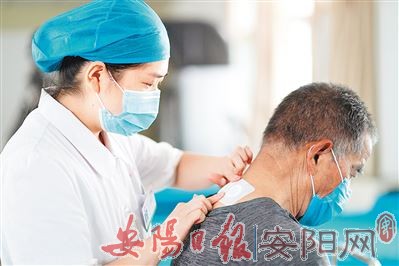 7月16日,河北省内丘县人民医院的医护人员在为市民贴“三伏贴”。