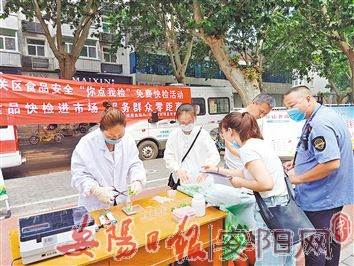 为进一步提高辖区群众对创建省级食品安全示范区的知晓率、支持率和满意度, 7月15日,北关区市场监督管理局在辖区佰客、健康路农贸市场组织开展了食品安全“你点我检”免费快检活动。据悉,此次活动共抽查蔬菜28批次、肉类10批次,均合格。图为活动现场。 (邢文皓 摄)