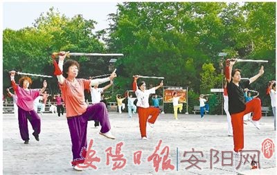 洹水公园内各式各样的晨练方式丰富了老年人的生活。