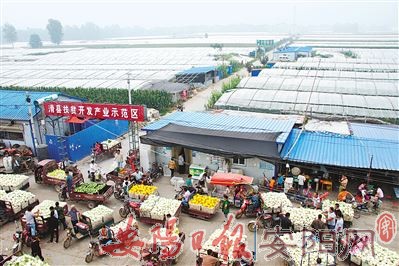 该镇利用瓜果蔬菜上市时间差,弥补各地市场对瓜果蔬菜的需求,培育交易市场,加强对外商贸沟通,打通网上营销渠道。该镇在大广高速公路进出站口附近3公里处协调3.3公顷土地,兴建金御苑瓜菜交易市场,直接对接丹尼斯、万邦等大型商超和瓜菜交易市场,实现“产地+餐桌”的快速营销模式。