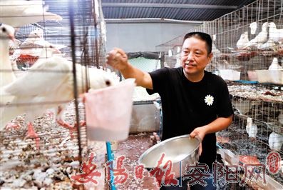 张安堂是建档立卡贫困户。在扶贫政策的帮扶下,他靠养殖肉鸽还清了外债,脱了贫。“三年前,乡里给我协调了5万元小额贴息贷款,让我发展肉鸽养殖。目前鸽棚内有400对种鸽,一对种鸽每年的纯利润在100元左右,我一年的净利润有四五万元。我现在脱了贫,还要把养殖技术传授给周边的贫困户,让他们也发展养殖业,共同脱贫致富。”张安堂说。