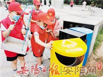 8月7日,北关区中华园小学二年级的学生来到位于洹水河畔的“安阳市北关区志愿者服务站”参加小志愿者活动。孩子们穿梭于绿化带、草丛中,用自己的小手捡起垃圾,不放过每一个角落,用实际行动诠释着“安阳是我家,环境靠大家”。