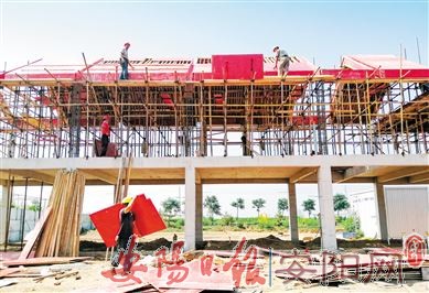 安阳县白璧镇西裴村利用脱贫攻坚政策优势,整合各类资金1400多万元,通过编制村庄规划、完善基础设施、打造扶贫产业、发展乡村旅游等,把“西裴小镇”打造成了远近闻名的乡村振兴示范村。图为8月31日,该村村民正在建设美食广场和竹兰酒吧项目。