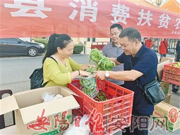 →9月11日,安阳县在示范区管委会和建工大厦门前举办了消费扶贫农产品展销会,新鲜的蔬菜、实惠的价格吸引了各单位干部职工纷纷前来购买。