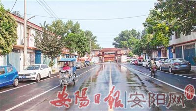 图为9月8日,高庄村村民走在新铺设的商贸街上。