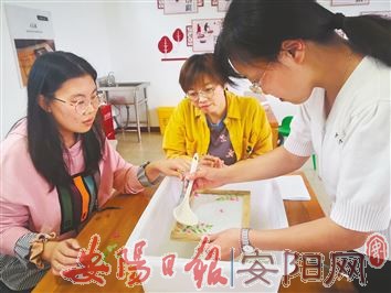 9月14日,北关区青少年素质教育实践基地开展新学期过关课教研活动。基地各场馆老师根据课程目标,积极准备教材,整合课程设计活动主题和具体内容,确定活动方式,创新课堂模式。图为造纸印刷工坊的老师以古法造纸方法为依托,探究古法造纸的72道工序。