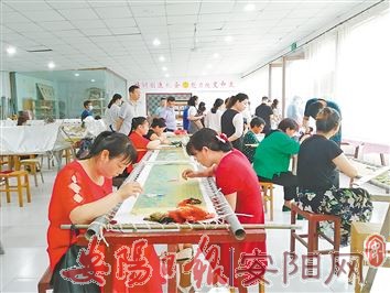 ←河南安绣文化产业集团有限公司是集设计、研发、培训、生产、销售、展示为一体的刺绣企业,产品远销海外。该公司在发展壮大的过程中积极参与脱贫攻坚工作,探索“公司+培训基地+农户”的经营模式,带动43个村庄3800余名群众从事专业刺绣工作。安绣成为滑县劳模助力脱贫攻坚的特色品牌。