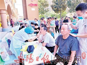 9月17日,高新区银杏街道华强城社区携手博爱社区及爱心医院开展爱心义诊活动。活动现场,博爱社区的志愿者免费为居民理发,医疗人员除为居民免费测量血压、检查视力外,还对他们进行健康指导。周到的服务受到辖区居民的一致好评。(本报记者 周俊英 摄)