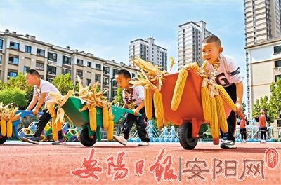 9月21日,山东省烟台市福山区清洋街道中心幼儿园的小朋友进行“运送粮食”趣味比赛。