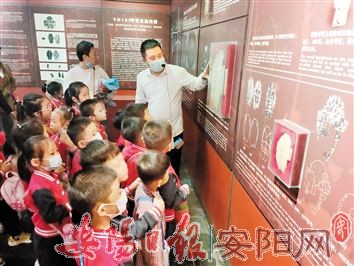 图为该园大五班小朋友参观殷墟博物馆,了解甲骨文。