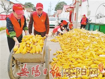 图为10月6日,白营镇机关志愿者在胡营村帮群众剥晒、运送玉米。(本报记者 郭 凡 摄)