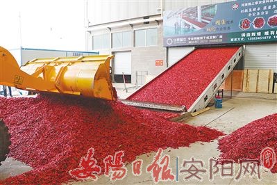 10月12日,内黄县的辣椒种植户将辣椒收获后销售给内黄果蔬城,将辛勤的付出变成满意的收入。图为内黄果蔬城对收购的辣椒进行存储。 (本报记者 任贵伟 摄)