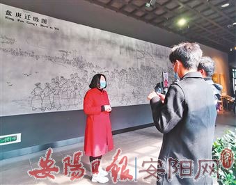 图为殷墟博物馆讲解员徐嫣由甲骨文的发现引出殷墟考古的缘起,向直播平台上的游客详细介绍殷墟文化。(本报记者 李 阳 摄)