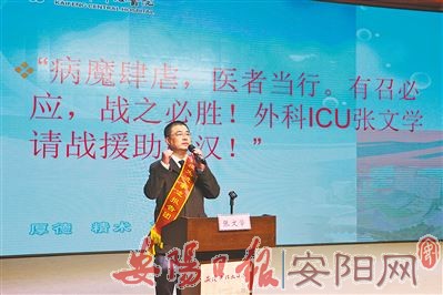 全国卫生健康系统新冠肺炎疫情防控工作先进个人、“中国好人”获得者、开封市中心医院ICU主任张文学的报告题目为《守卫生死之门的逆行战士》。他满怀深情地讲述了自己带领医疗队成员牢记使命、同心携手、竭尽所能,努力与死神搏斗,全心全意救治每一位病患生命的感人故事。