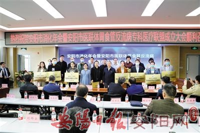 本报讯(记者 郭新星)10月17日,安阳市2020年消化年会暨安阳市医联体胃食管反流病专科医疗联盟成立大会在市人民医院举行。近百位专家学者齐聚一堂,共同努力,推动胃食管反流病规范化治疗和专科医联体建设。市卫健委党组书记、主任王永斌,中国医疗保健国际交流促进会胃食管反流多学科分会副会长兼秘书长吴继敏,市人民医院党委书记马绍恒等参加大会并分别致辞。